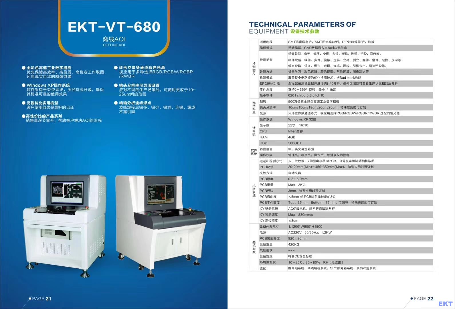 EKT-VT-680H離線AOI設(shè)備技術(shù)參數(shù) Technical Specifications