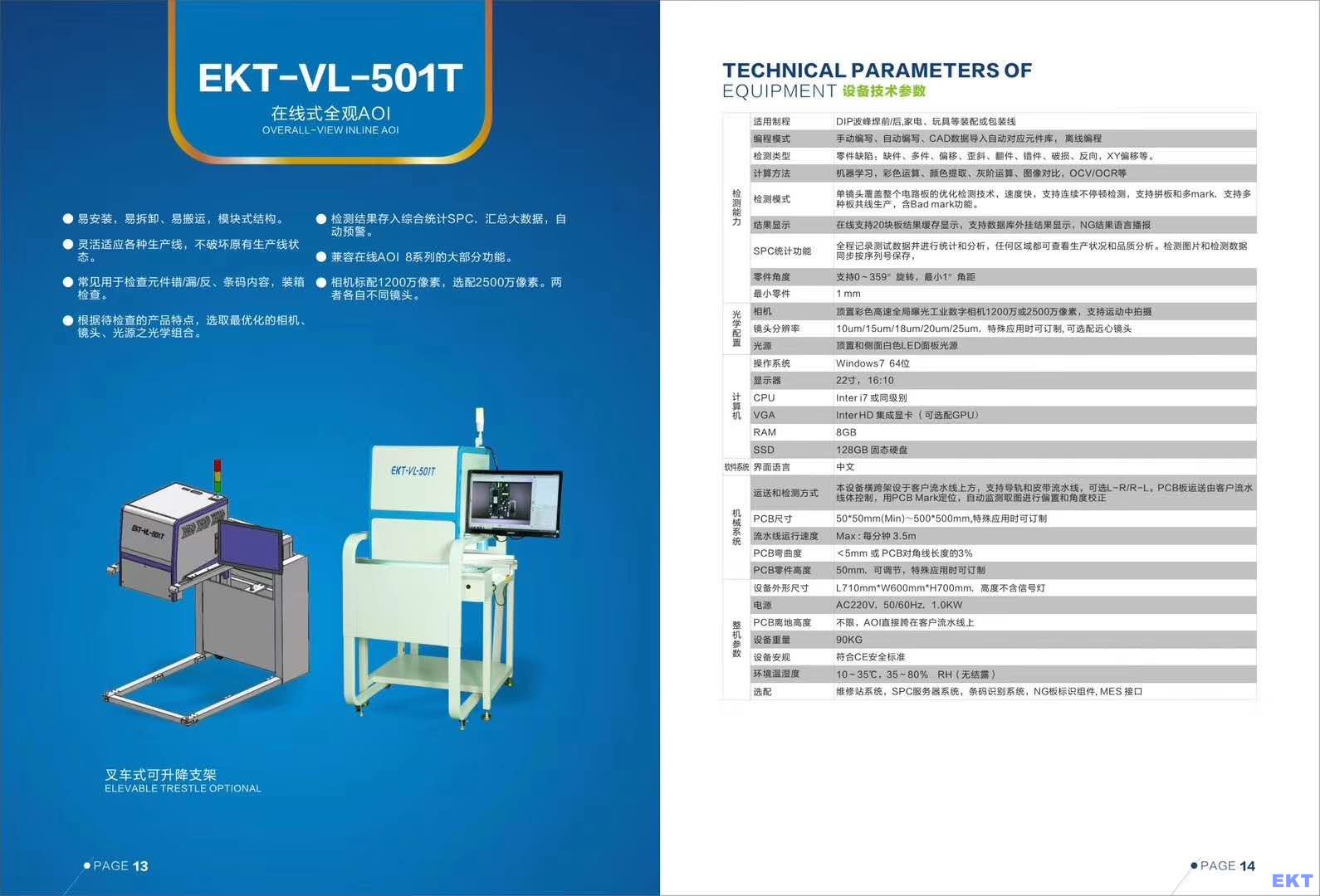 一.EKT-VT-501T插件線AOI設備技術參數